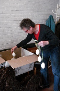 naar de molen, zodat zij in alle rust de bijzondere eieren konden uitpakken.