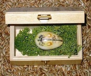 Samen met haar moeder, Gisela Sassmann, die eveneens eieren beschildert, heeft Christine tijdens Kleinschalig 2007 voor het eerst in Nederland geexposeerd. |