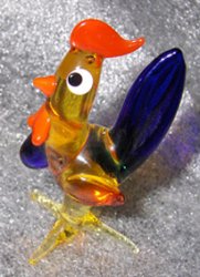 Frieda Vaes. Felgekleurde glazen kippen en hanen neemt zij mee naar de