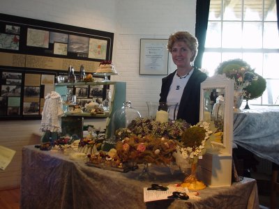 Als enige op de expositie versierde Gemmy op "Kleinschalig 2000" niet op eieren. Maar wel ermee, en hoe! In haar boeketten en andere bloemversieringen is altijd het seizoen te vinden. Zij maakt trouwens niet alleen bloemige versieringen, ook fraaie taarten en gebakjes (van brooddeeg) zijn haar specialiteit. Die stalt ze dan weer uit op antieke Franse gebakschalen... Gemmy geeft ook regelmatig workshops waar mooie werkstukken gemaakt worden. |