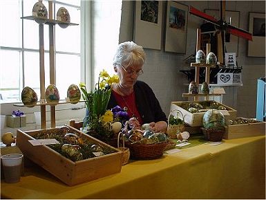 Nel tekende en schilderde al langer, toen ze bij het Cultureel Centrum een cursus "Eieren versieren" deed. Na ieder cursusjaar kwamen de cursisten bij elkaar en leverden ze allemaal een versierd ei in. Deze eieren werden in een mand gelegd, er kwam een doek overheen en ieder mocht, zonder het te zien, daar een ei uit nemen. Zo kreeg je een aardige verzameling eieren. Ook werden eieren van de cursus geëxposeerd in een winkelcentrum en in het Raadhuis van Warmond. Daar werden Nels eieren opgemerkt en kreeg ze uitnodigingen voor eiertentoonstellingen, waaronder "Kleinschalig 2000". Nel houdt van tuinieren en kijkt vaak, ook als ze voor een verkeerslicht staat, naar landschappen en tuinen. Vandaar dat je op haar eieren veel van deze motieven terug kunt vinden. Verder houdt ze ook van schilderen met lapjes en aquarelleren. |