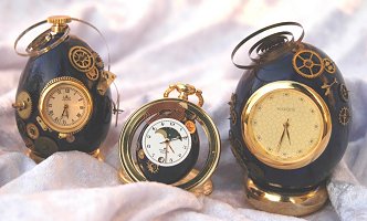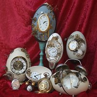 De eieren van de Duitse Kerstin Dischereit zijn werkelijk uniek. Ze stopt eieren in zakhorloges, zakhorloges in eieren en ook oude wekkers verwerkt zij samen met bijv. kwarteleitjes tot een bijzonder nieuw soort wekker in een ganzenei. Het klinkt niet alleen ongelooflijk, het ziet er ook heel bijzonder uit. Bovendien lopen vrijwel al deze eier-uurwerken nog op tijd ook! We vonden het een grote eer dat Kerstin in 2007 de lange reis vanuit Leipzig ondernam om haar bijzondere eieren aan het Nederlandse publiek te laten zien en zijn bijzonder blij dat zij ook tijdens het Feest van Herkenning in 2009 van de partij was. |