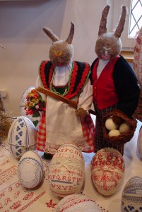 stoffen op eieren van papier maché te verwerken. |